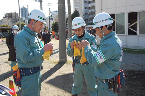 同競技大会は、電気の新設・撤去工事において、的確な施工と安全を重視した基本作業の定着および公衆安全の確保を図るとともに、信頼される登録調査機関として、調査員の調査能力向上を図ることが目的で、高度な技術力と的確な安全確保などを競い合った。