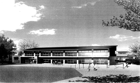 改築後の校舎の規模は、RC造2階建て延べ1250㎡。普通教室10室のほかに、図書室も整備する計画だ。
