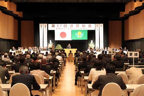 総会には、晴れの日を祝い国会議員、県議会議員、行政機関長らが多数出席。永年功労者などを称える表彰では、受賞者に盛大な拍手が送られた。