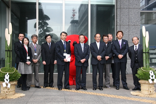 門松の寄贈式では、造園緑化協会の中村会長が「門松は歳神様が下界に降りてくる目印であり、福をもたらす縁起物である。県職員の方々にはいつも県民のためにご尽力頂いている。一県民としてお礼を申し上げるとともに、この門松を通じて福が来るように、すがすがしい気持ちで新年を迎えられればと思う」とあいさつ。
