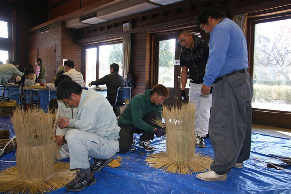 寄贈する門松を製作した「門松づくり講習会」は今月21日、千葉市花見川区の千葉市ふるさと農園多目的ホールで開かれた。内容は、同協会の若手技術者が対象の「本格門松づくり」と、昨年から始めた一般県民を対象とする「ミニ門松づくり」。講師は同協会の朝生章氏、大久保裕昭氏、川西正人氏、榊原正和氏の各技術委員が担当。一般を対象とするミニ門松づくりには、24組(28人)が参加した。