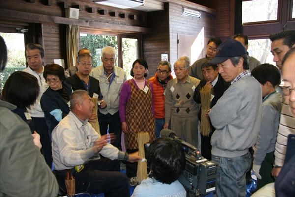 若手技術者向けの講習会では、受講者を4班に編成し、それぞれ高さ約1・6mの本格的な門松を1基ずつ、計4基(2対)を製作。見本とするため、あらかじめ技術委員が製作した2基(1対)と合わせて、6基(3対)を寄贈用に完成させた。