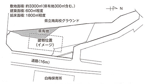 地目は雑種地ほか。県有地は19年度に取得する予定。近隣には白梅保育所(元吉田町3250―1)や県立水戸南高等学校(白梅2―10―10)などが立地。隣接する道路は十分な広さが確保されており、両側に歩道が設置されている。