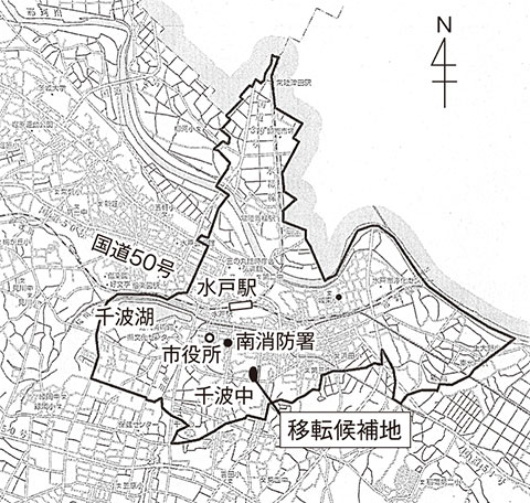 現在の施設は水戸駅から近く、昼間の人口が多い有効な場所にあるが、消防署の拠点としては敷地が狭く(A519・22㎡)、耐震補強工事や現敷地内での改築は難しい状況。このため、駅南地域を中心に、移転先の候補地を探していた。