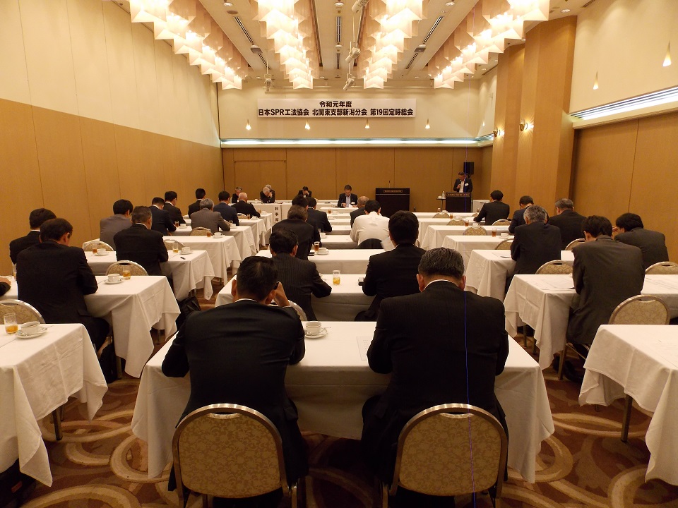 日本SPR工法協会北関東支部新潟分会(堀武夫分会長)は6月27日、新潟市内の万代シルバーホテルで第19回定時総会を盛大に挙行した。議事では任期満了に伴う役員の選任が行われ、堀分会長をはじめ全役員の続投が決まった。