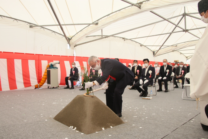 新印青果西部卸売市場(渡辺晃代表取締役社長、燕市吉田法花堂4670)の移転新築工事が5日、起工を迎え、現地で安全祈願祭が開かれた。市場関係者や工事関係者をはじめ、来賓として国会議員や県議会、市議会議員など、およそ50人が出席。神事が執り行われ、工事の安全を祈願した。