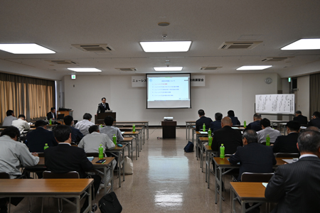 講習会では同工法の技術説明に加え、斜面維持補修施工技術研究会の窪塚大輔技術委員が「法面保護工の維持補修に関するガイドライン(案)・事例集の紹介」として吹付法枠工の補修の考え方および事例を紹介したほか、新潟大学工学部社会基盤工学プログラムの佐伯竜彦教授が「構造物各部位における水掛かりの定量評価」をテーマに特別講演を行った。