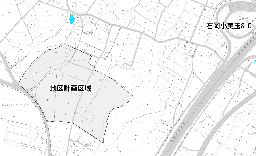 第1期地区は正上内および石岡の一部、面積約7・6ha。地区整備計画としては、幅員9mの道路2路線を整備。東西に延びる道路-1に関しては延長約220mの新設、南北方向の道路-2(延長約190m)に関しては現道拡幅となる。道路-2については、北側の丁字路まで拡幅工事を予定している。合わせて排水路整備を進める方針。雨水の放流先については園部川を想定している。