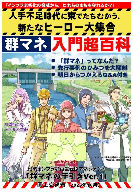 国土交通省は、地域インフラ群再生戦略マネジメント(群マネ)の手引きバージョン1『群マネ入門超百科』を同省特設HPで公表した。各種データなどをカラーイラストを多用して見やすく掲載している。また付録編として、自治体が群マネを検討する際の支援ツールを掲載している。