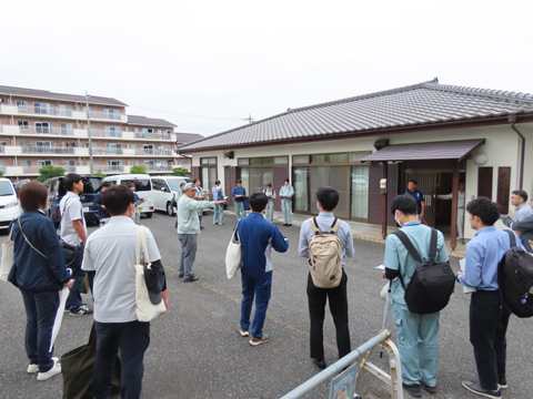 東松山市民文化センターに集まった参加者を前に金井塚会長は「協会と県地域機関との意見交換の場で、県の用地担当者の方に部会の研修会に参加してもらい、われわれの業務にご理解いただければとお話したところ、今回初めて、県の用地担当者の方の実施研修参加が実現した」と感謝を伝えた。続けて「実地研修では、日頃の業務の中で不明な点があれば、現地で講師に質問したり聞いてほしい」と述べ、有意義な研修となることを期待した。