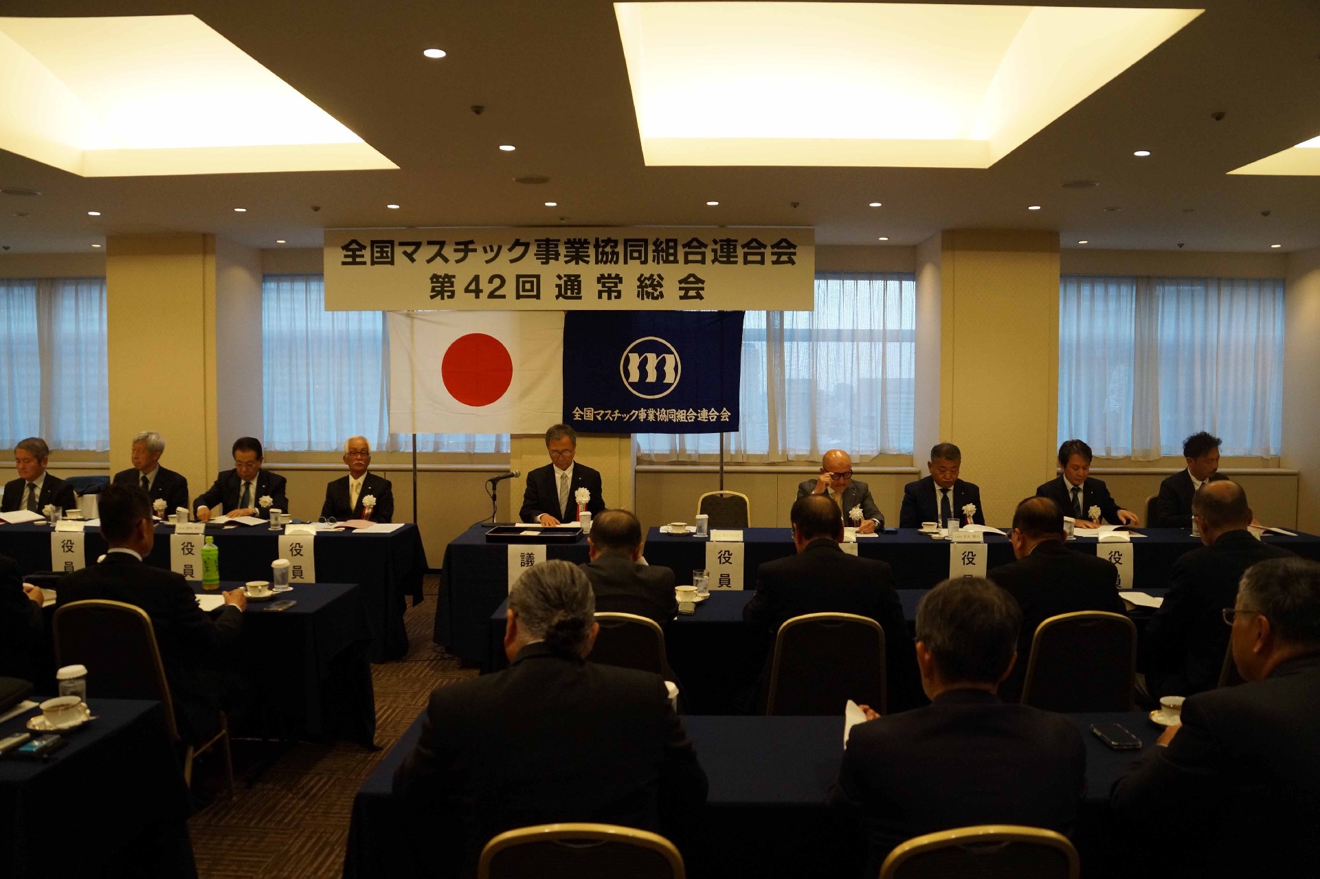 全国マスチック事業協同組合連合会(實松幹次郎会長)は10月24日、第42回通常総会を都内のLEVEL XXI東京會舘で開催した。2025年度事業計画など6議案を全て原案通りに承認した。重点施策に長期性能・工事完成両保証事業の整備および充実、PB商品の販売促進などを挙げた。