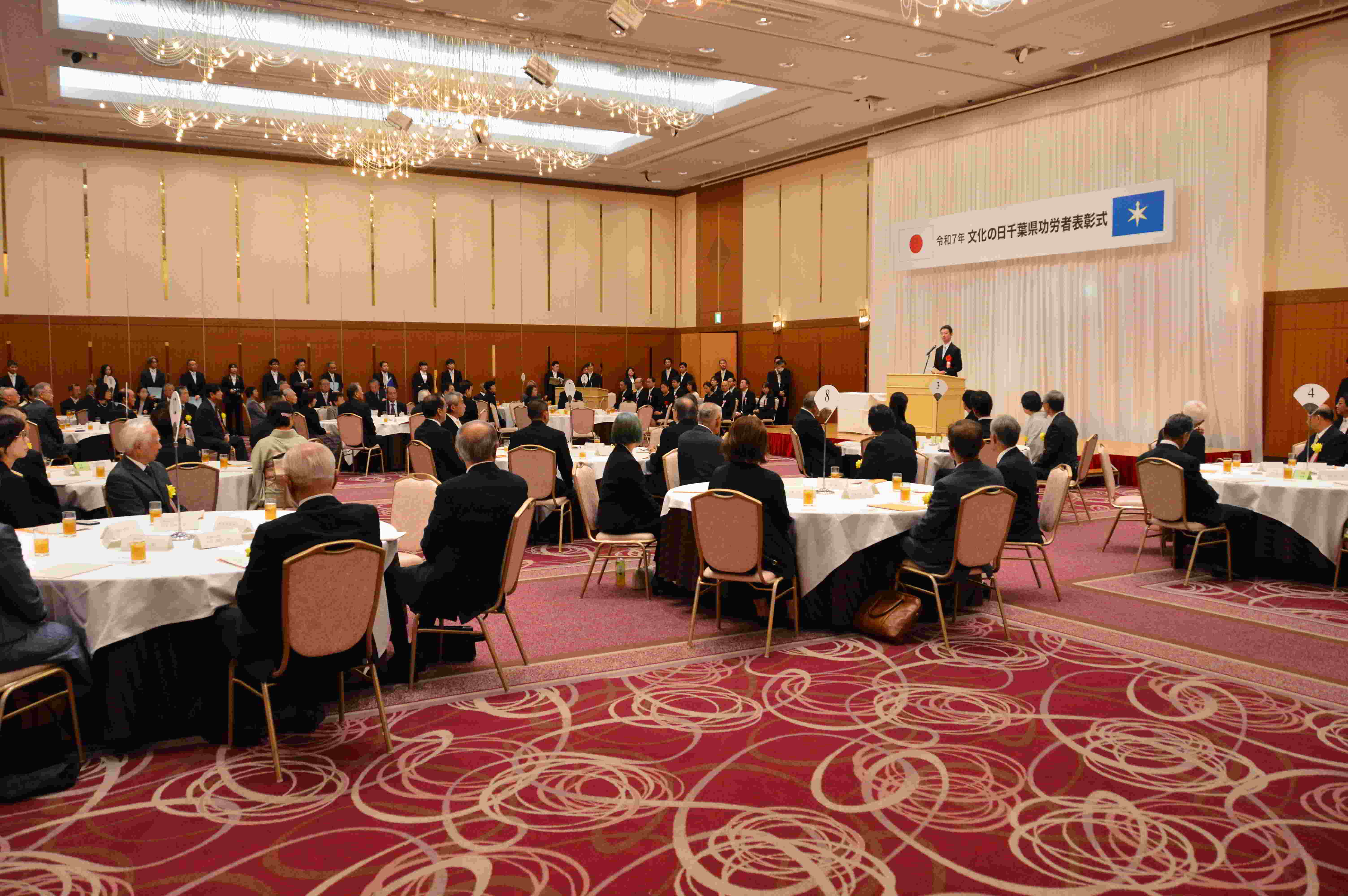 県総務部は3日、2025年文化の日功労者表彰式を千葉市内の京成ホテルミラマーレ6階「ローズルーム」で執り行った。表彰対象は、61人・2団体。あいさつに立った熊谷俊人知事は、受賞者の長年にわたる尽力に対し、敬意と感謝の意を表した上で「皆さまは素晴らしい功績を残すとともに、後進の育成にも力を注いできた。その背中を見て育った多くの方々がいる。日本は諸外国に比べて資源が乏しいが、人材を資源と捉えて大切にしていくことが何よりも重要」との認識を示し、各分野のけん引役としてさらなる尽力を求めた。