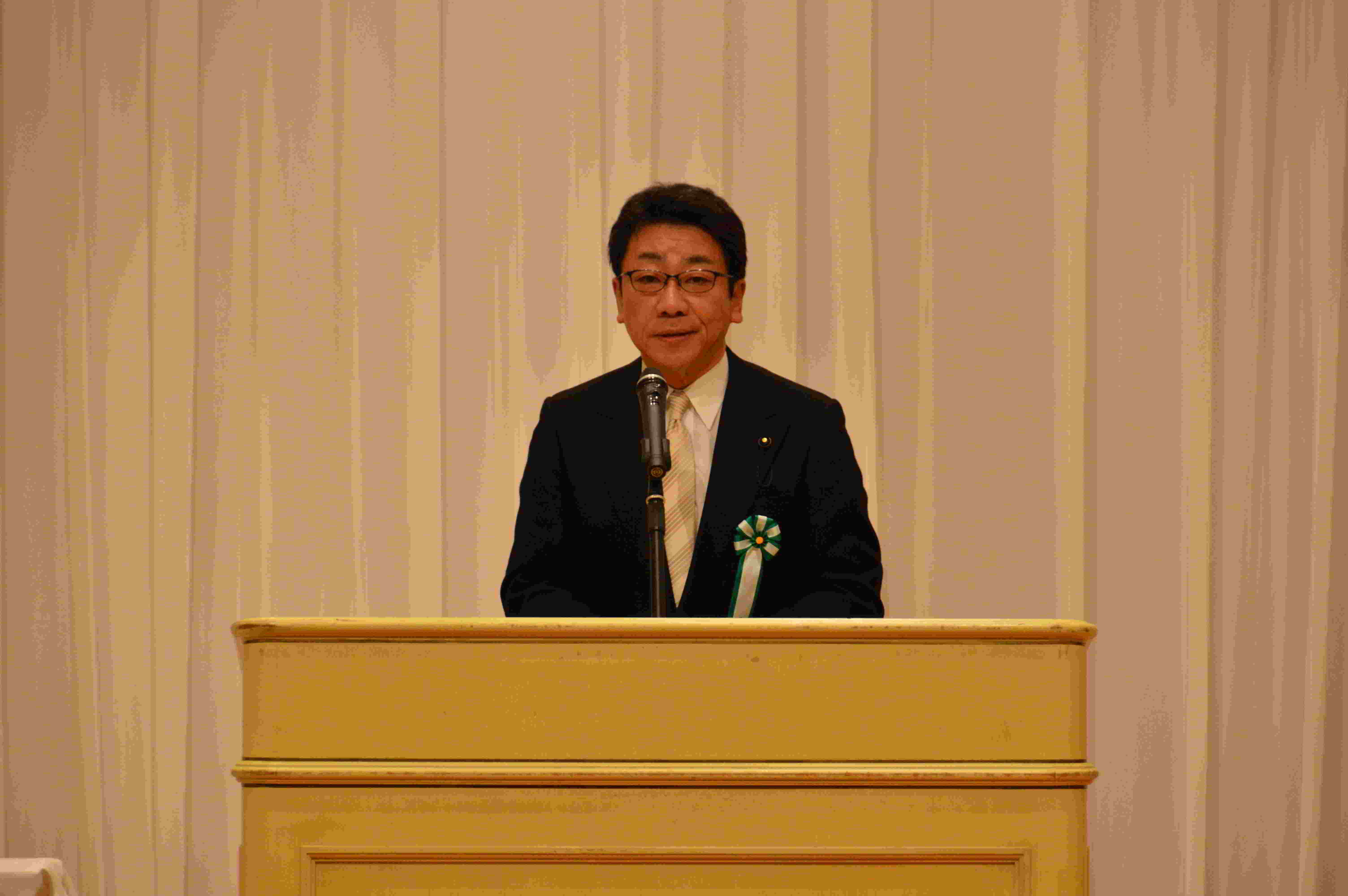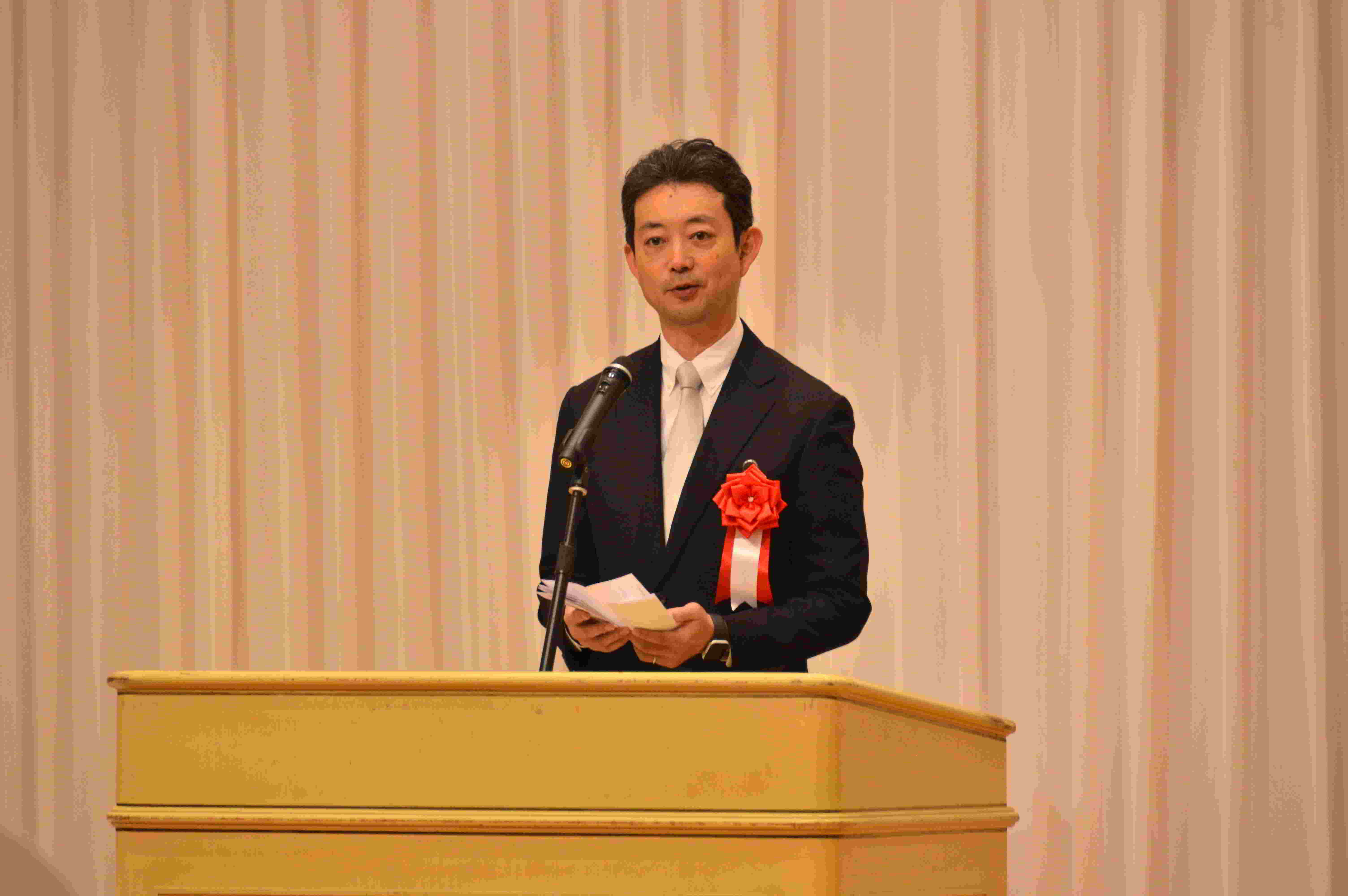 表彰状授与の後、武田正光・県議会議長、小泉一成・成田市長(千葉県市長会副会長)、佐藤晴彦・横芝光町長(千葉県町村会理事)が来賓祝辞を述べた。
