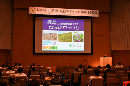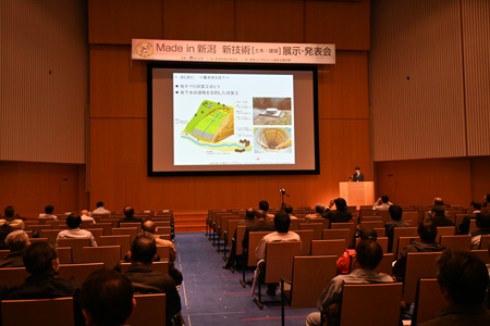 新潟県生まれの新技術を紹介するMade in 新潟新技術(土木・建築)展示・発表会が19日に新潟市の朱鷺メッセで開かれた。主催は県、新潟県建設業協会、建設コンサルタンツ協会北陸支部。県内企業35社が開発した77技術のパネル・製品等の展示、4社による技術発表が行われたほか、遊びと学び研究所・ゲーミフィケーションデザイナーLv99の岸本好弘氏が「建設×ゲーム!?『ファミスタの父』が語る、現場をワクワクに変える魔法」と題した特別講演もあり、建設業者、行政関係者で大いににぎわった。