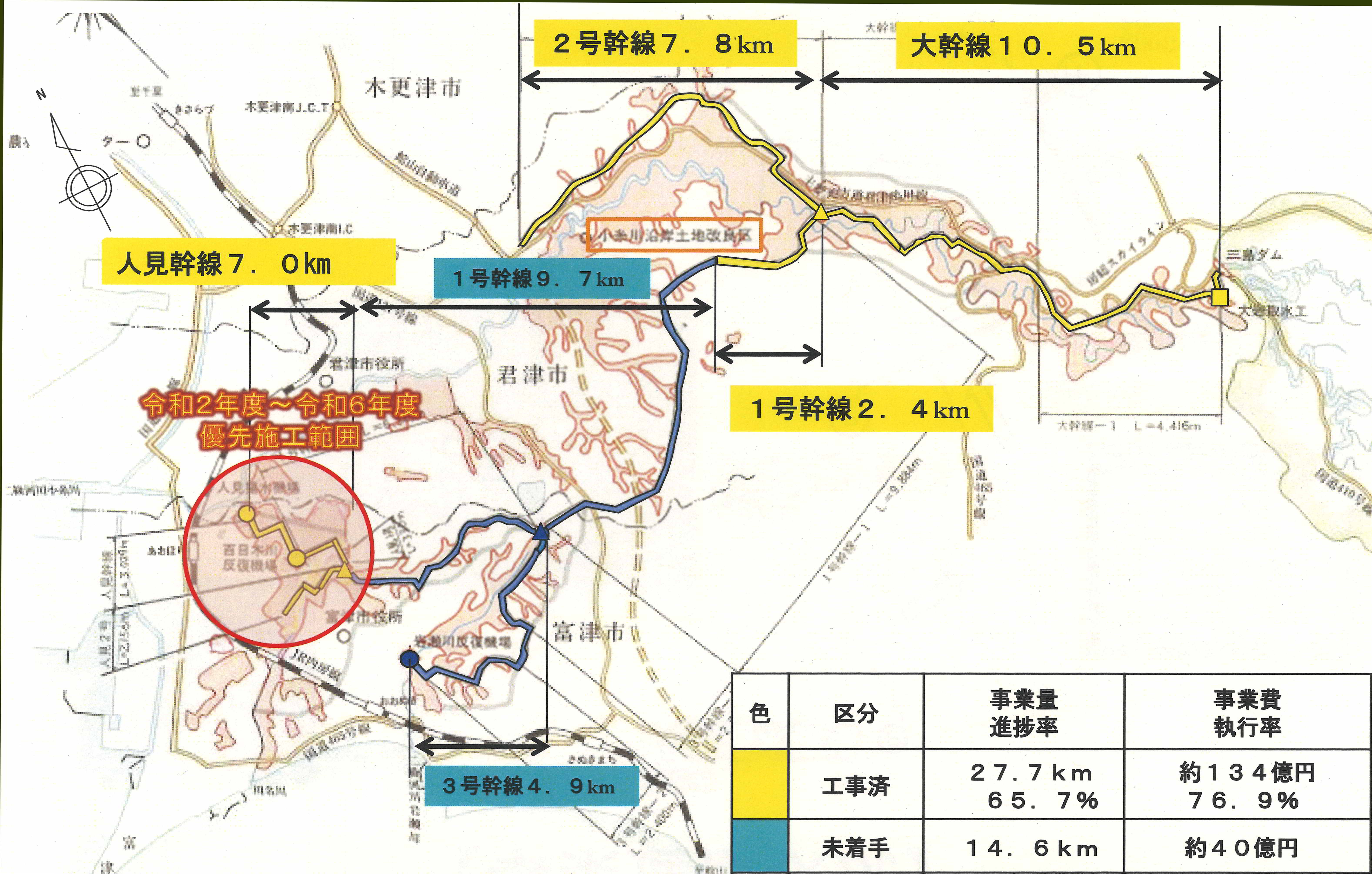 用水路整備などに伴う区分地上権などについては、全体約15・6kmのうち、約8・9kmが未設定。今後、整備事業の中心となる1号幹線に限っては、約8・7kmのうち、約7kmが未設定となっている。