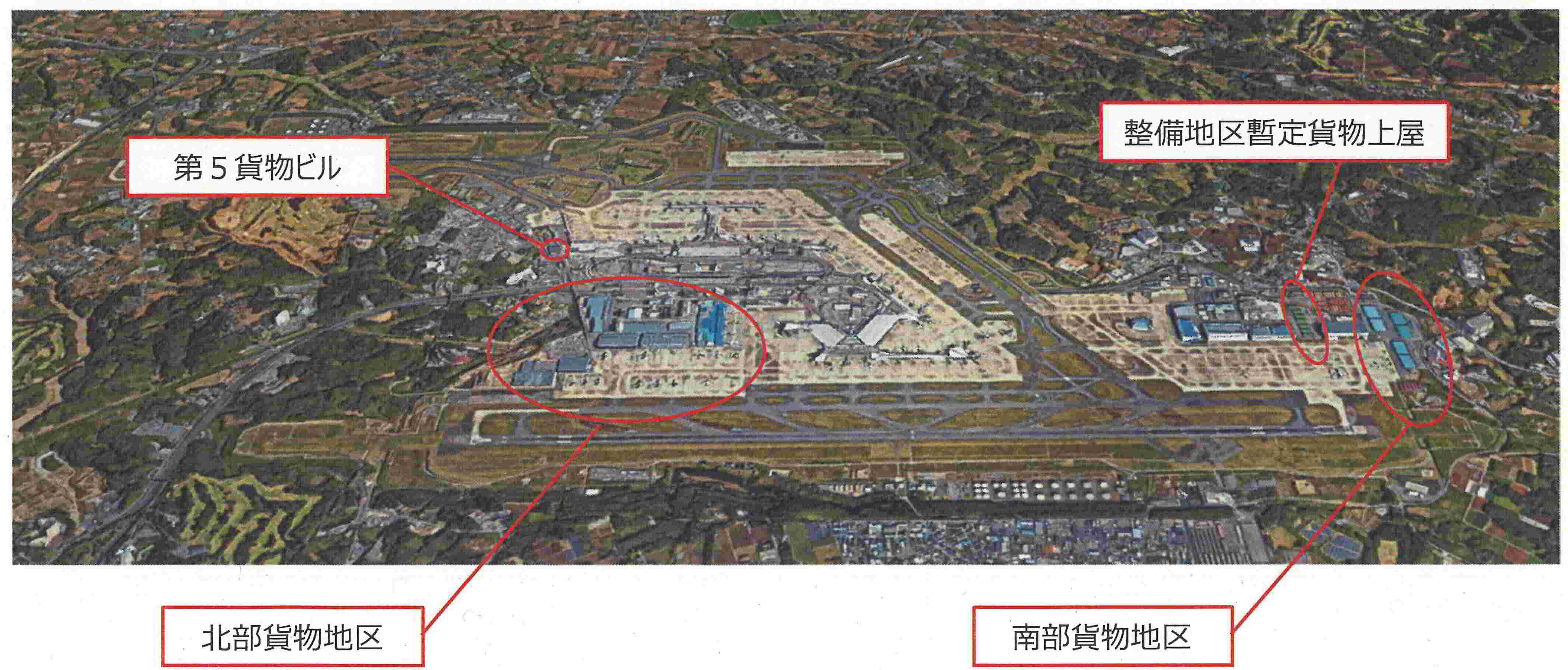 成田空港内上屋は、第1貨物ビル、第2貨物ビル、日航貨物ビル、輸入共同上屋が供用開始から48年、第3貨物ビルが同42年、第4貨物ビルが同30年を経過するなど、老朽化が進行している。加えて、狭あい化や分散化も課題となっており、抜本的な解決のために新貨物地区の整備が求められている。