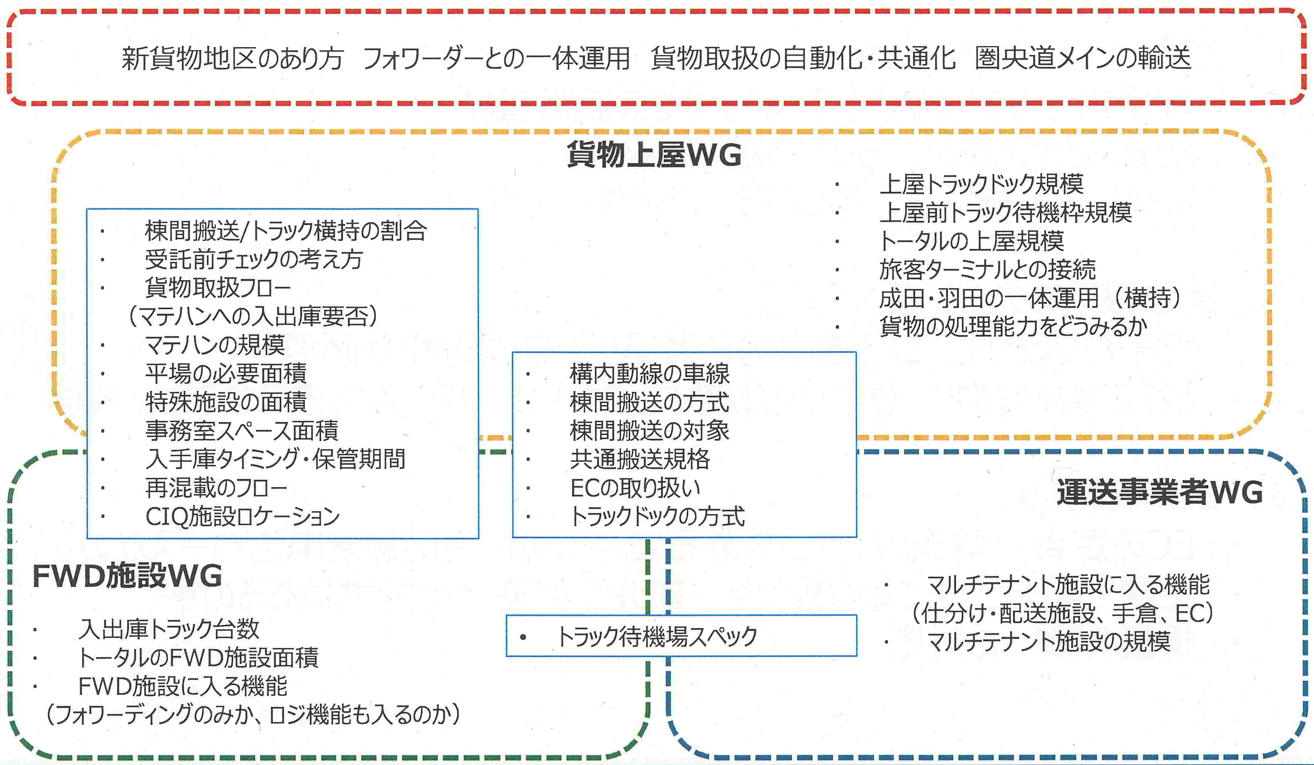 協議会では「第2の開港プロジェクト」の一環として航空物流機能の高度化を進めるに当たり、「新しい成田空港」構想検討会などにおける議論を深度化し、理想的な新貨物地区のあり方を定めるため、貨物オペレーションを実施する航空会社、上屋事業者、フォワーダー、運送事業者らの意見を聞く。