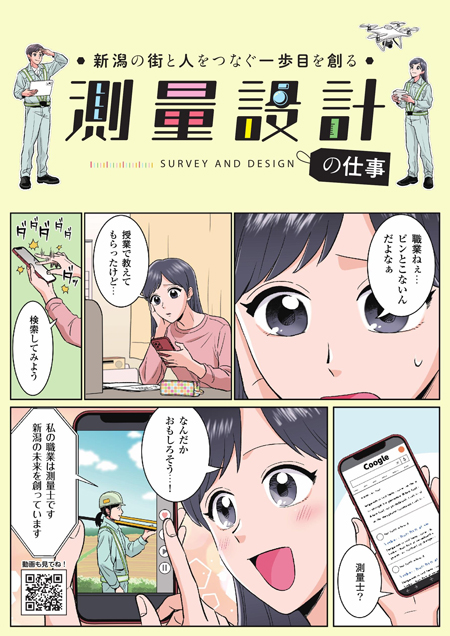 新潟県測量設計業協会(新測協、佐治力会長)は、新たなPRパンフレット「測量設計の仕事」を制作した。担い手確保・育成対策の一環として県土木部の補助事業を活用したもので、漫画を取り入れるなど、中高生向けに分かりやすい内容となっている。