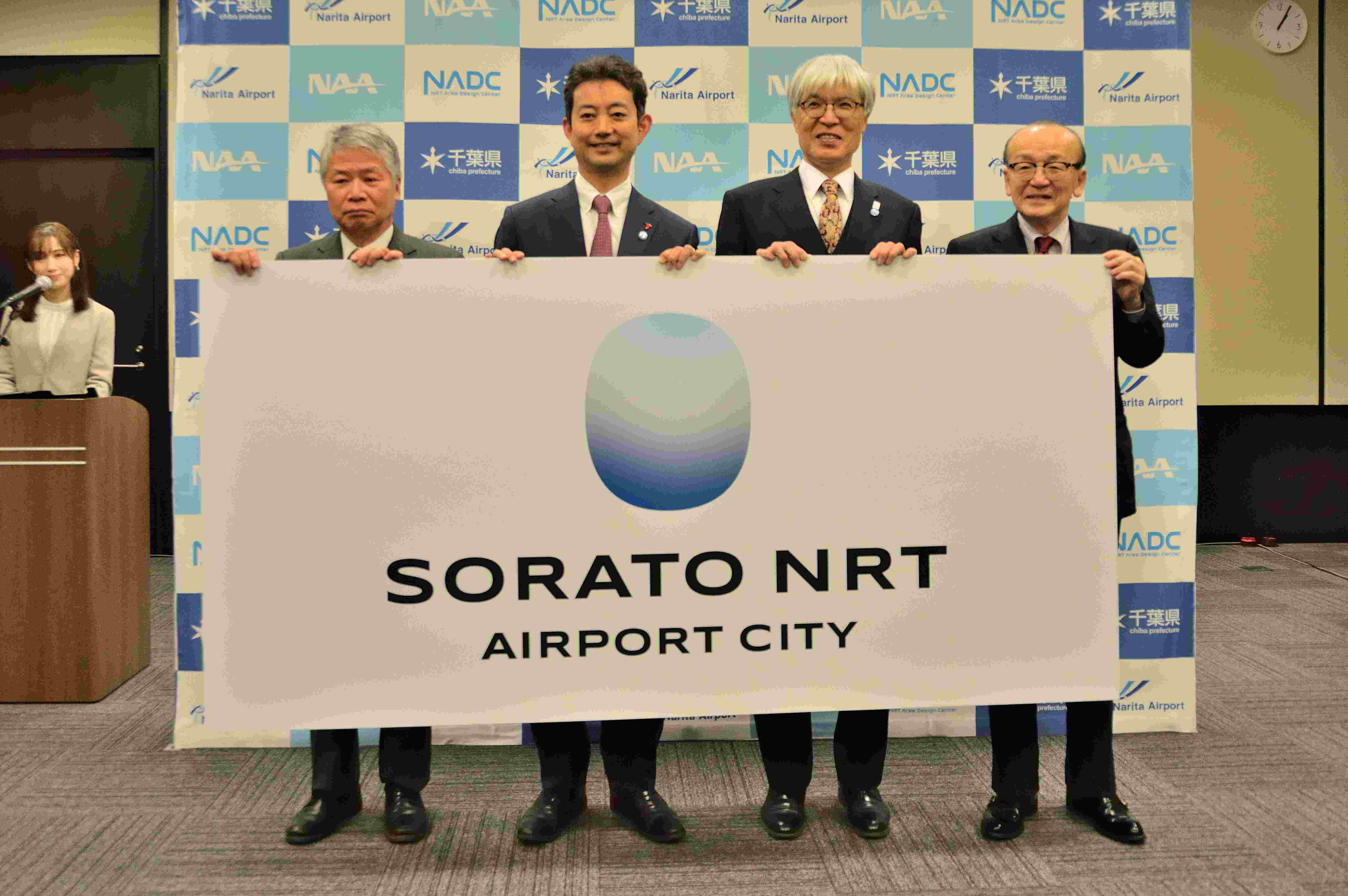 NRTエリアデザインセンターは、成田国際空港を中心とした新しい都市圏の名称を「SORATO NRT(ソラト ナリタ)」に決定し、ロゴデザインおよびメインビジュアルなどと合わせた発表会を、28日に東京都千代田区の日経ホール6階「日経・大手町セミナールーム1」で行った。熊谷俊人知事は発表会の後、記者団に対して「自由民主党において、成田空港を核とした国際的な産業拠点を創っていくための議論を深めていただいており、今年はこれまでの議論が政策に反映される重要なタイミング」との見方を示した上で、「空港周辺地域が行政区を超えて一体となって空と共に歩んでいく、そのブランディングとエリアデザインにしっかりと取り組むということが今回、象徴的に示された。これを契機に、国の関係機関や政治に対してより強力に提案していきたい」と力を込めた。