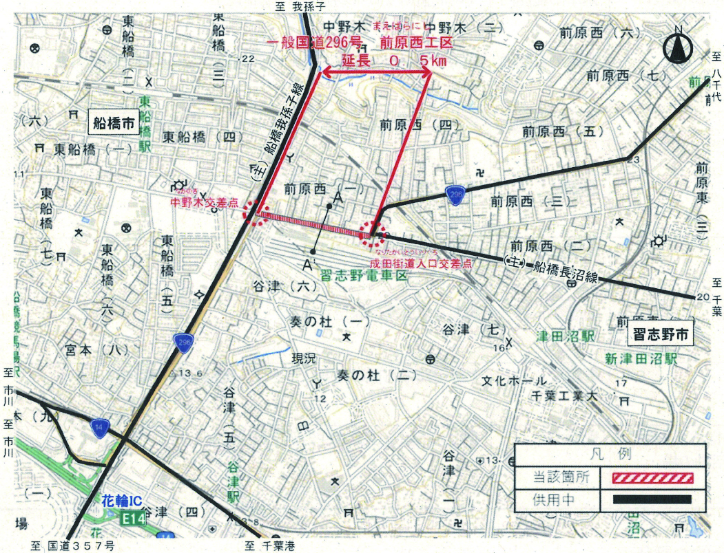 県県土整備部は18日、2025年度第7回県土整備公共事業評価審議会を、県庁本庁舎5階特別会議室を本部としてウェブ会議形式で開催。「一般国道296号前原西工区」の新規事業着手が了承された。事業区間は、船橋市前原西ほかの中野木交差点から成田街道入口交差点までの0・5km。南側の拡幅により、中野木交差点の左折車線新設、成田街道入口交差点の付加車線の滞留長延長、単路部の中央部帯(ゼブラ帯)新設、両側歩道への整備を行う。事業期間は26~35年度。事業費は約24億円。