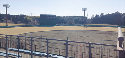 野球場は両翼100m、中堅122m、観客席280席を有する。整備の方向性としては空調機器などの暑熱対策や照明器具等の整備、防球ネットの改善などを挙げ、高校野球県大会やリトルリーグ全国大会等の誘致に向けた環境整備を推進すべきとした。