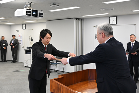 優れた創意工夫によって科学技術の考案、改良などに貢献した実績が顕著な功労者を表彰する文部科学大臣表彰で、北陸地方整備局の花沢裕哉氏による「歩道除雪車の作業装置自動化機構の考案」が創意工夫功労者賞に輝いた。15日には北陸地整で受賞伝達式が行われた。