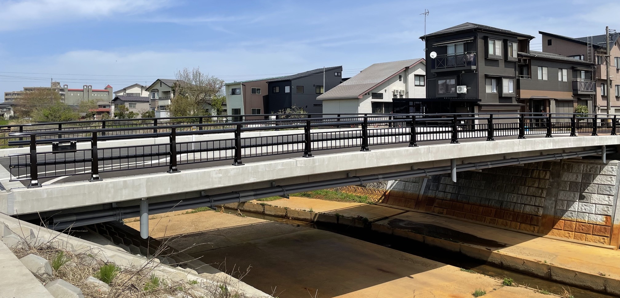 橋梁の規模は橋長25・9m、車道幅員7m、歩道が2・3m。上部が単純ポストテンション方式スラブ桁、下部が逆T式橋台でダイエープロビスが施工を担当。総事業費5・6億円を投じて完成し、本年1月末に供用を開始した。